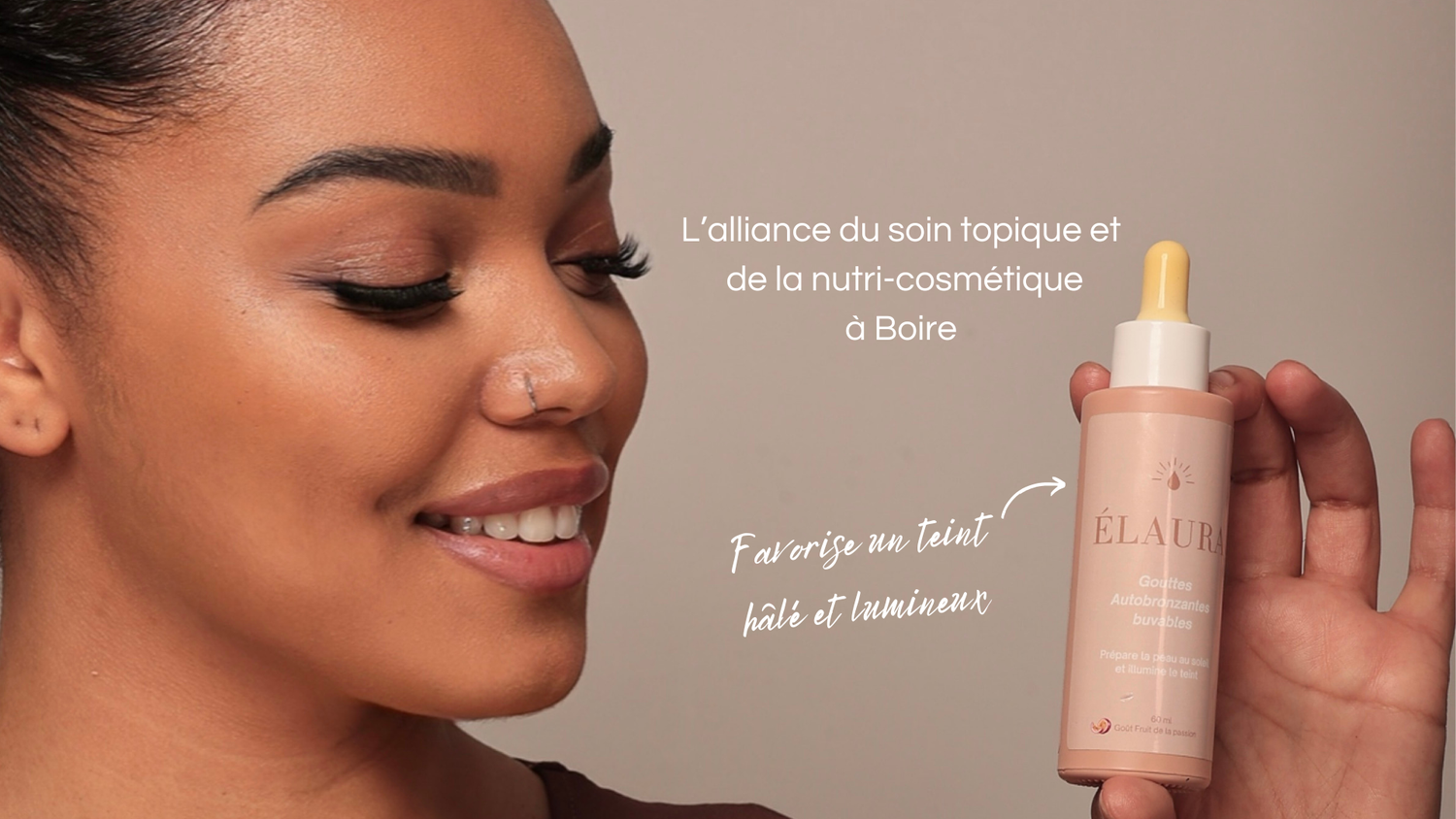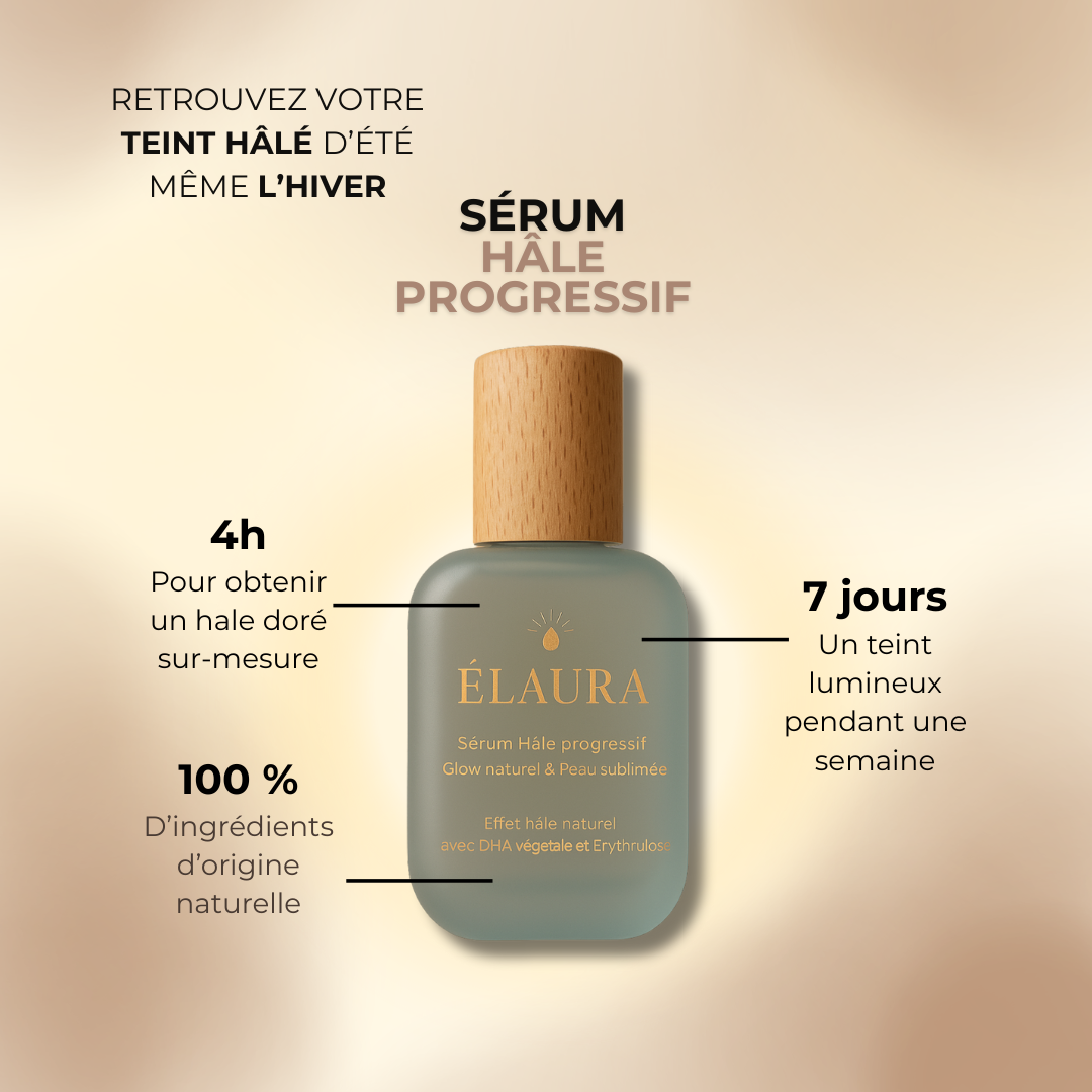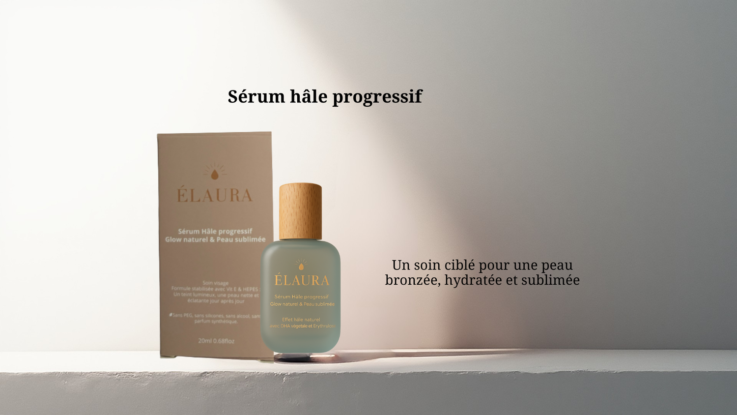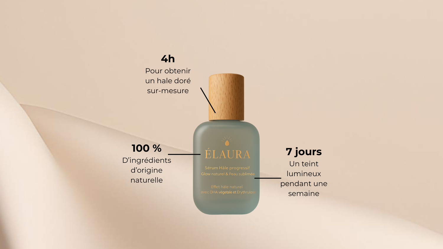 "Élaura , l'aura dorée de votre peau grâce à du soleil...dans une goutte !"