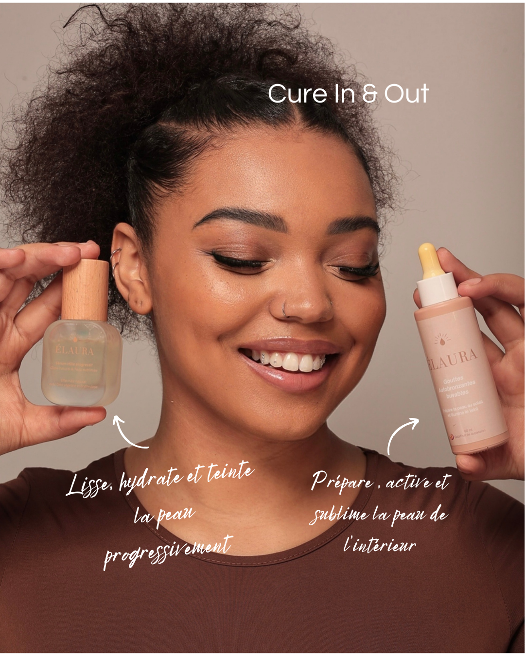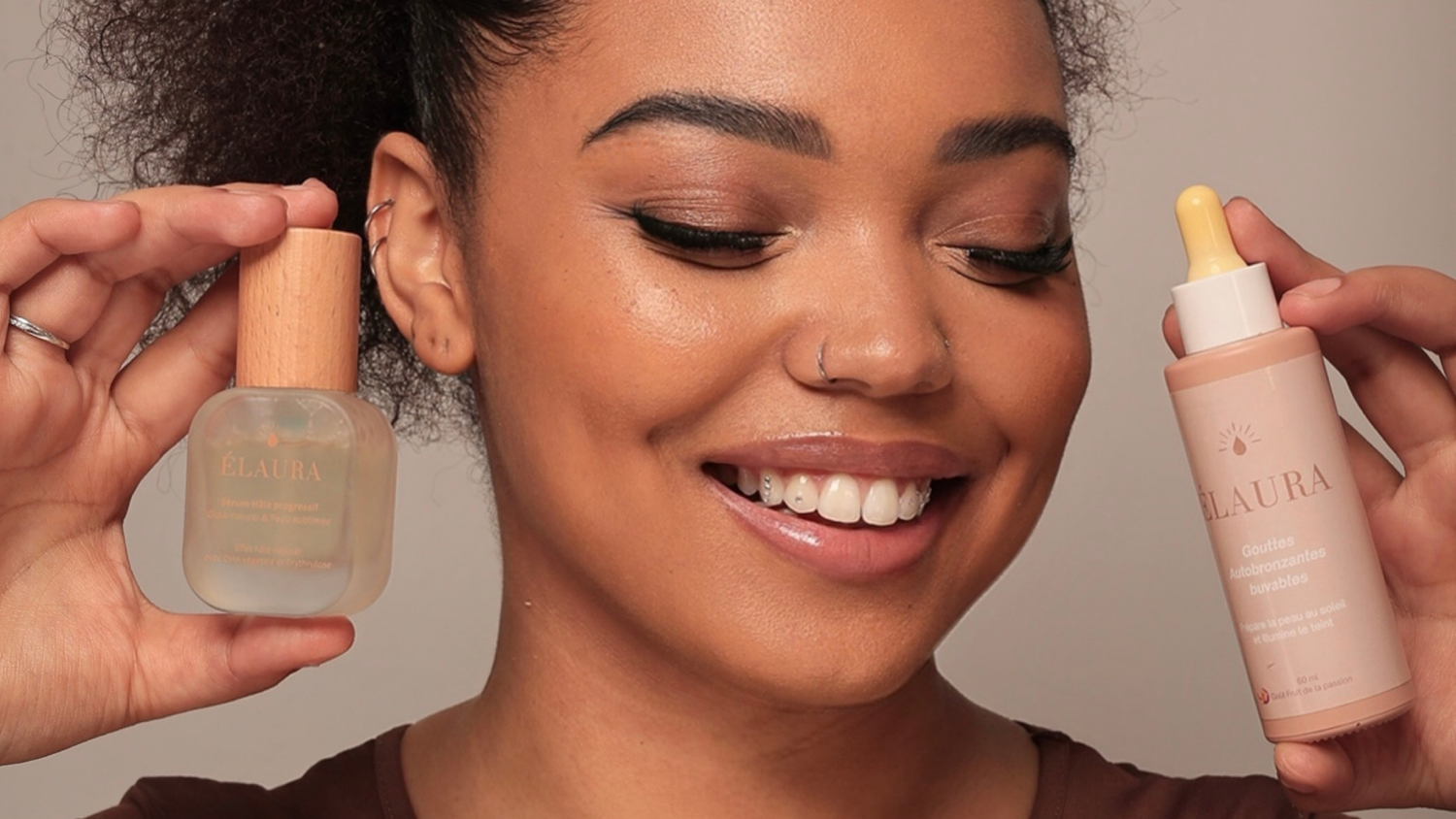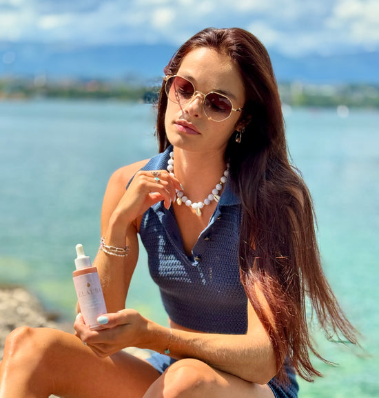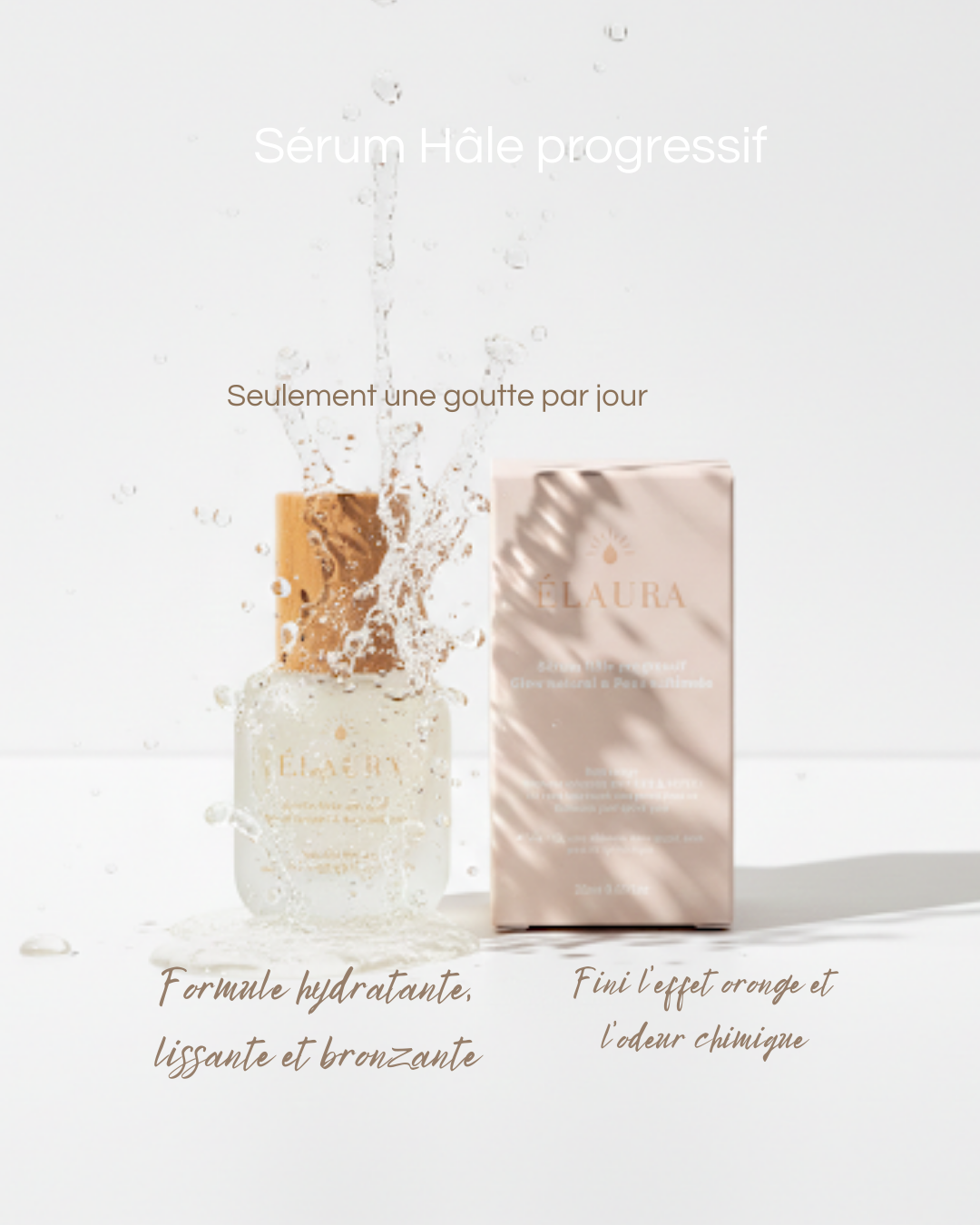 "Élaura , l'aura dorée de votre peau grâce à du soleil...dans une goutte !"