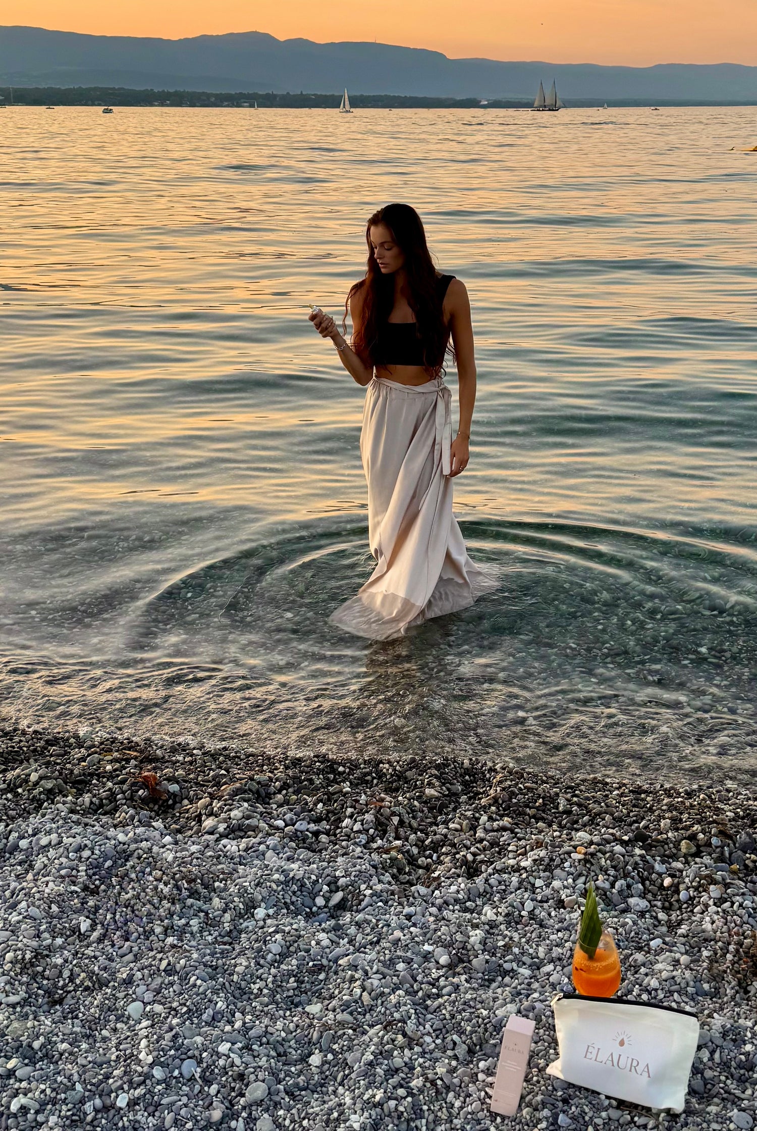 Et si le soleil s'invitait dans votre verre ? Quelques gouttes chaque jour, et votre peau s'éveille doucement, comme après une semaine au bord de la mer...