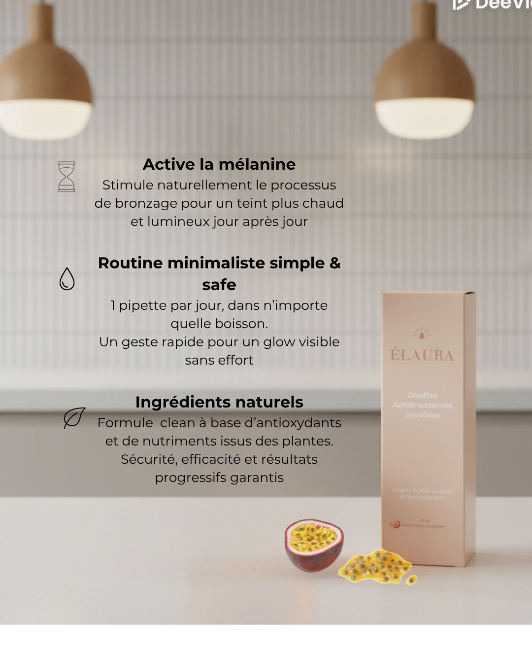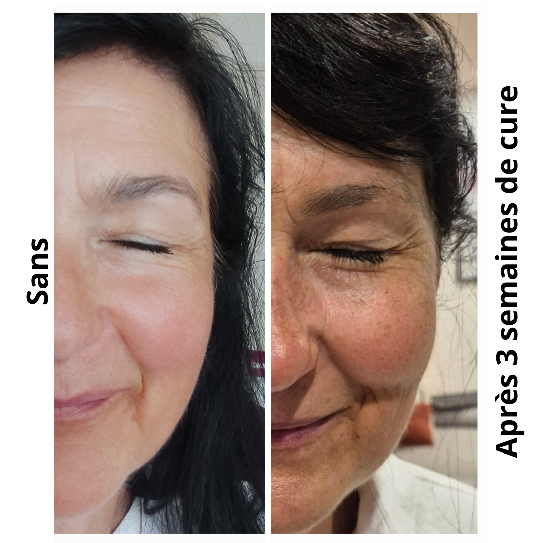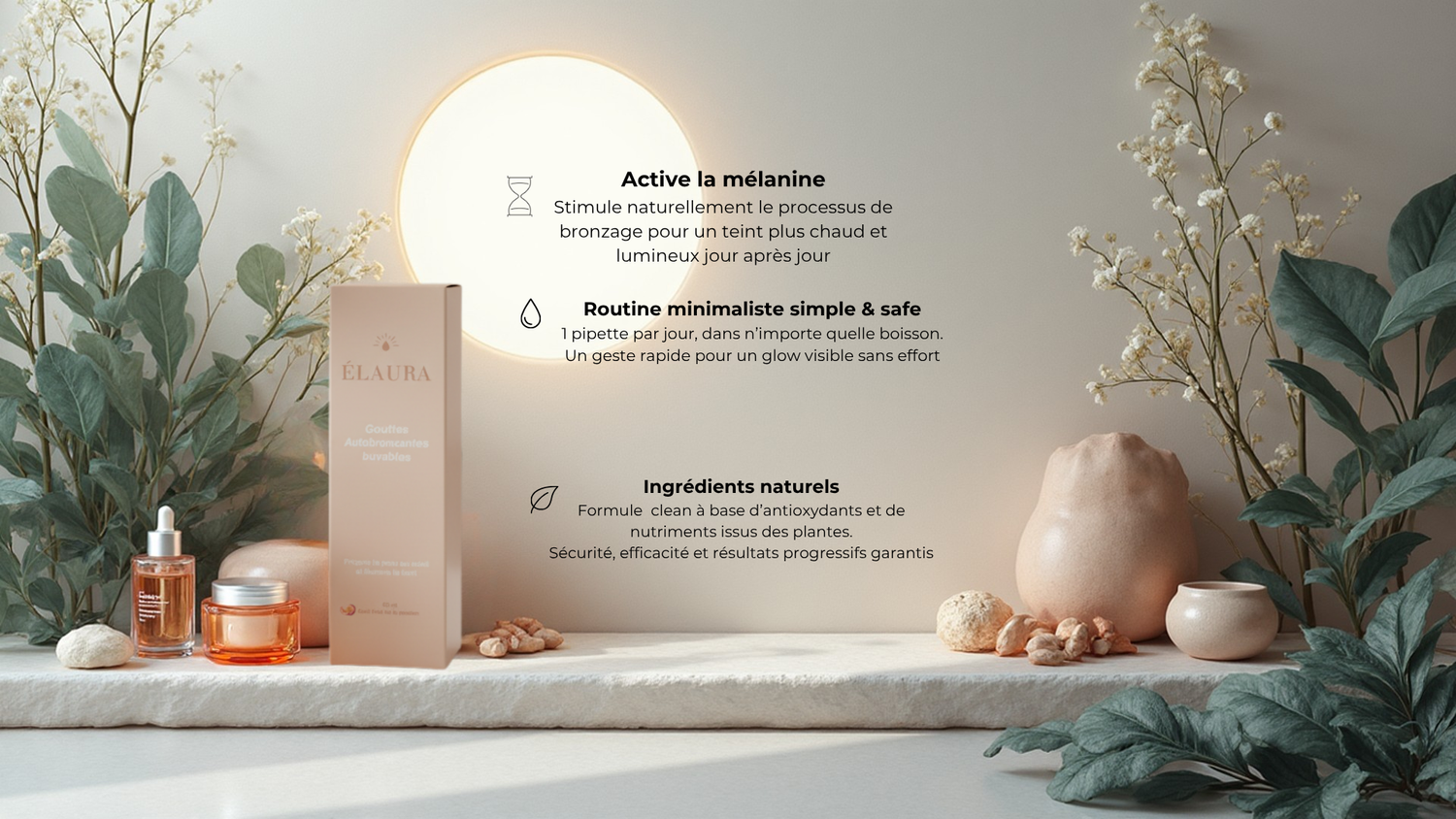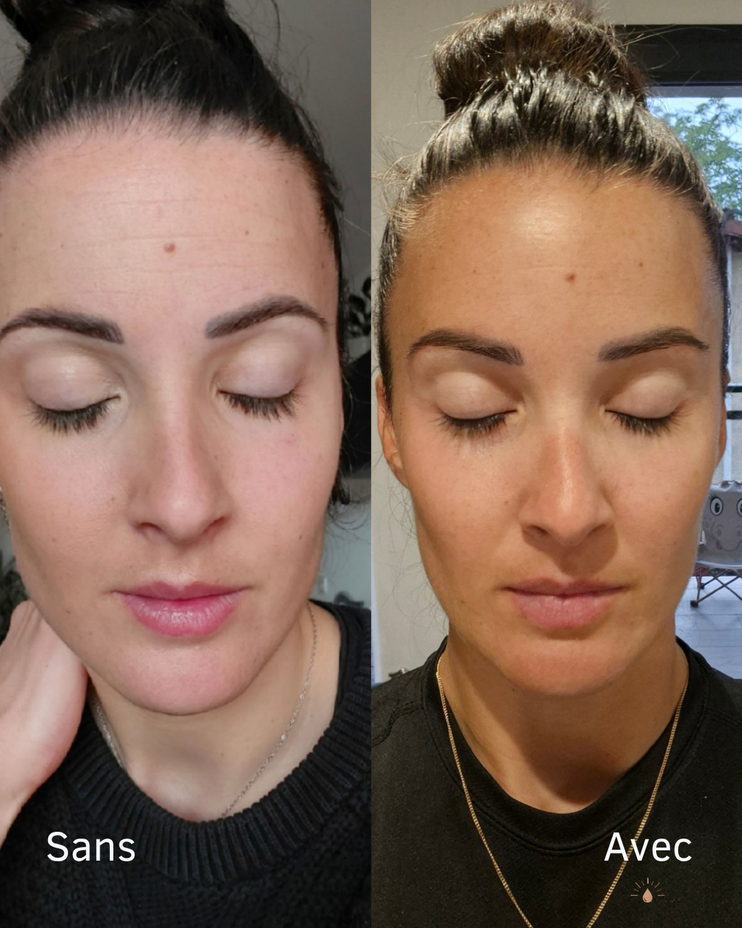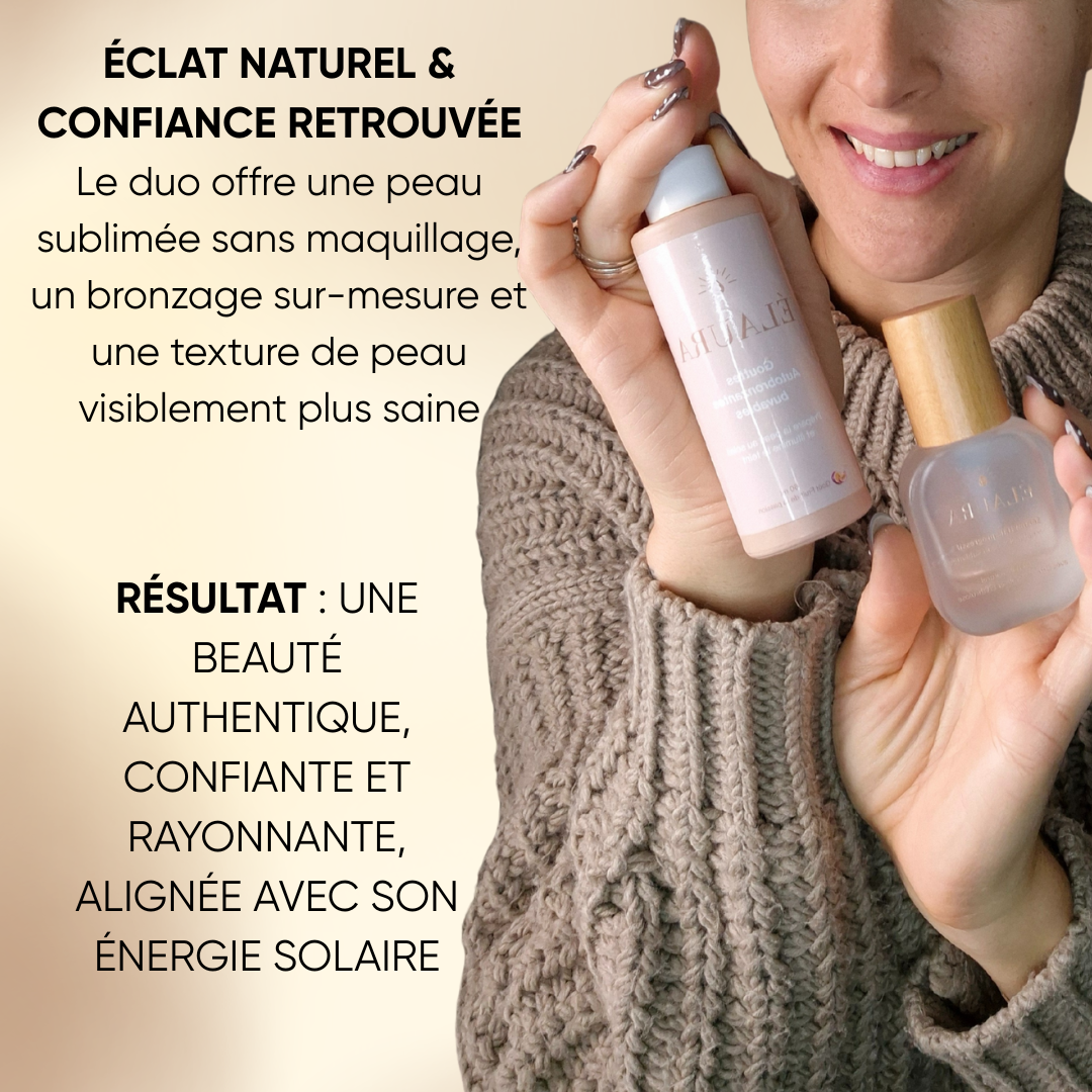 Résultat d'une routine simple et clean : nutrition solaire + soin progressif pour un glow uniforme , sans soleil