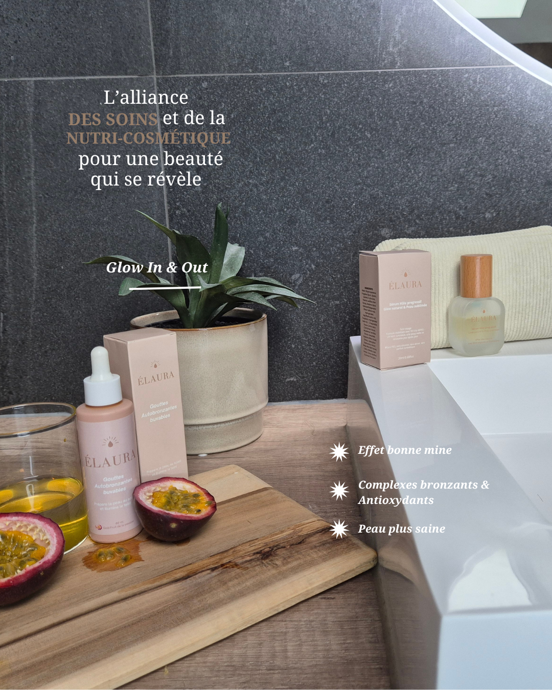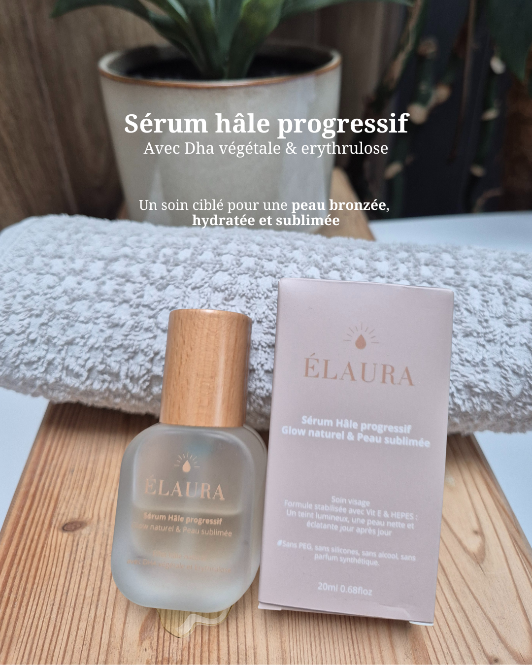 "Élaura , l'aura dorée de votre peau grâce à du soleil...dans une goutte !"